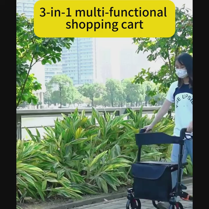 wheel roller shopping cart which is lightweight and can befolded andunfolded in one step for use It has an enlargedshopping basket a seatand adjustable height It isa shoppingcart suitable for the elderly and people of different heights
