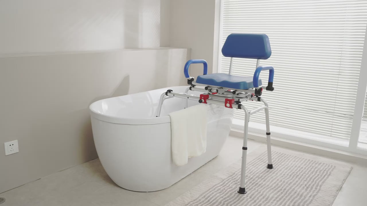djustable Height Sliding Shower Chair with Swivel Seat - Foldable Bathtub Transfer Bench