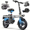 740W Electric Bike For Adults, 20MPH Full Shock Absorption Comfortable Riding, 48V10AH/15Ah, 10-35Miles Folding Ebike, 14'' Tubeless Off-road Tire, City Commuter Battery Optional