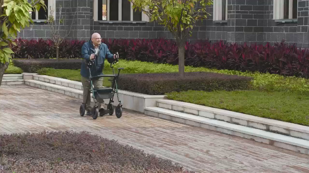 All-Terrain Upright Rollator Walker with 10" Large PU Wheels & Adjustable Padded Armrests - Heavy-Duty Aluminum Frame, Non-Slip Traction, Sturdy Brakes