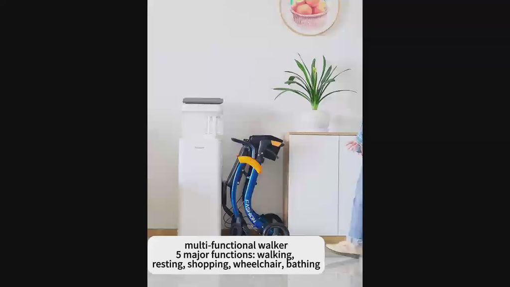 Foldable Walker With 8-inch Wide Tires, Rest Seat, Height-adjustable Armrests, Storage Space, 300-pound Weight Limit For Daily Mobility.
