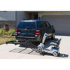 • Featuring an innovative 42" 3-position ramp, you can smoothly load and unload your scooter or wheelchair, while the ramp conveniently folds flat when not in use, allowing easy access to your tailgate or hatch.