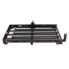 • The carrier is constructed from durable, powder-coated steel and can support up to 500 lbs. It includes 10 tie-down points for added security and a 5/8" hitch pin for a safe and stable connection to your vehicle.