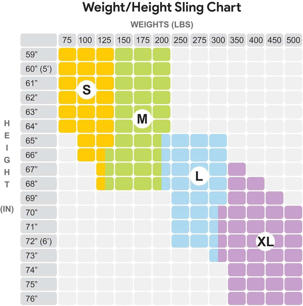 • IMPORTANT! CHECK SIZING GUIDE: There are different ways to measure slings. To ensure you choose the correct size, check the second and third images to see a sizing guide and where the measurements are made.