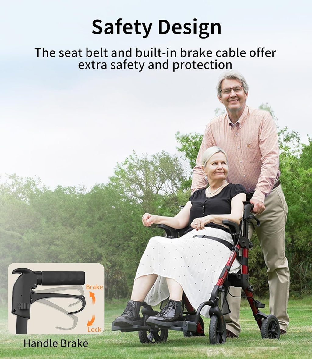 Walkers for Seniors, Wheelchairs for Adults, Rollator Walker with Seat, 2 in 1 Rollator Transport Chair with Brakes, Rollator Lightweight Foldable, Walker Wheelchair Combo